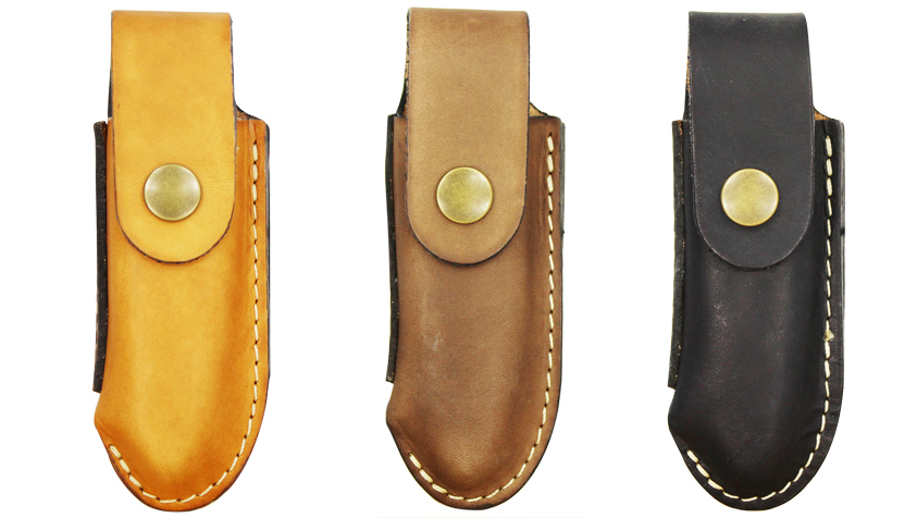 Les étuis sont confectionnés à partir de bandes de vachettes qui sont tannées de manière végétale, à l'écorce de chêne.