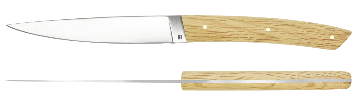 6 bois vous sont proposés ainsi que des manches en micarta (tissu et résine compressés) qui supporteront sans problème le passage au lave-vaisselle.